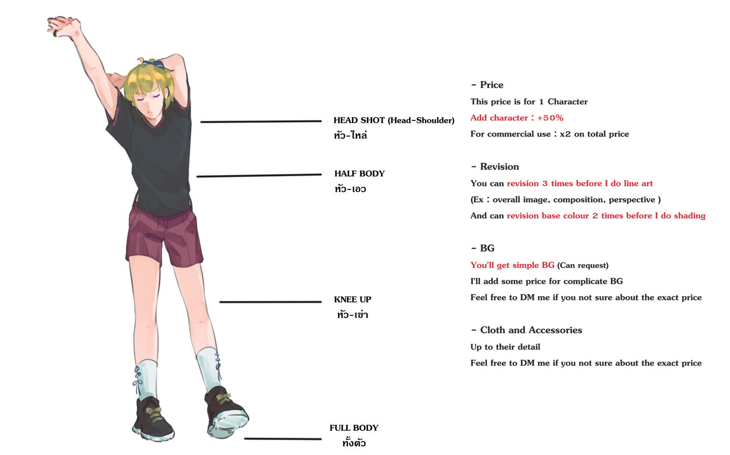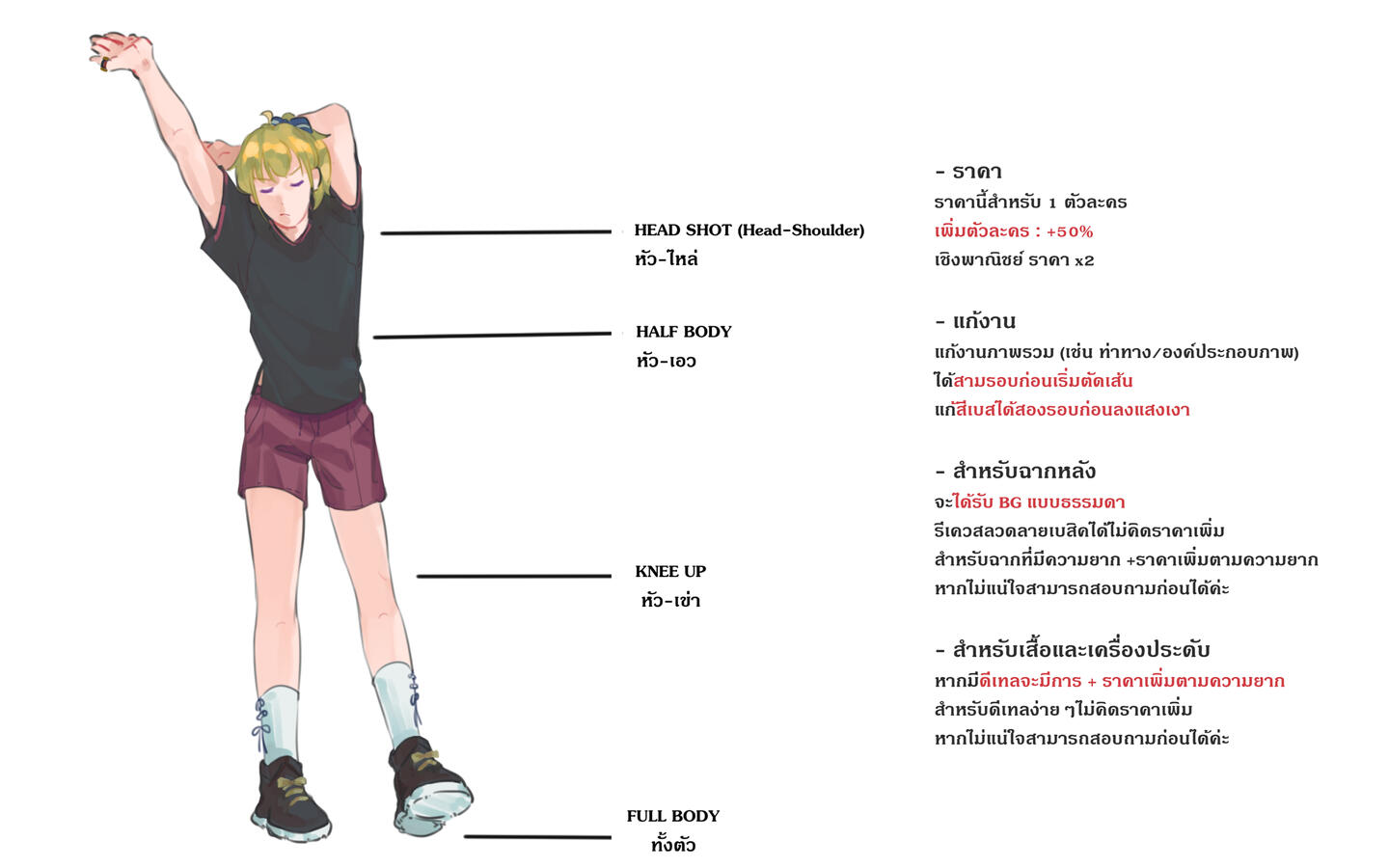 | Rough Colour : HEAD SHOT/ HALF BODY / KNEE UP | 12+$ / 400+ THB |